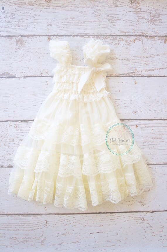 How cute is she?!? The darling flower girl is wearing a lace dress from Posh Peanut Kids.