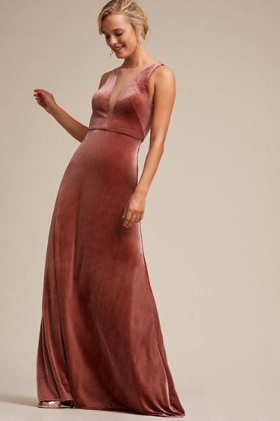 Out in Terrain’s cozy courtyard it was all about the velvet burnt orange couch with coordinating throw pillows, accompanied by bridesmaids in textured garments + gowns from BHLDN, styled by Trousseau Style.